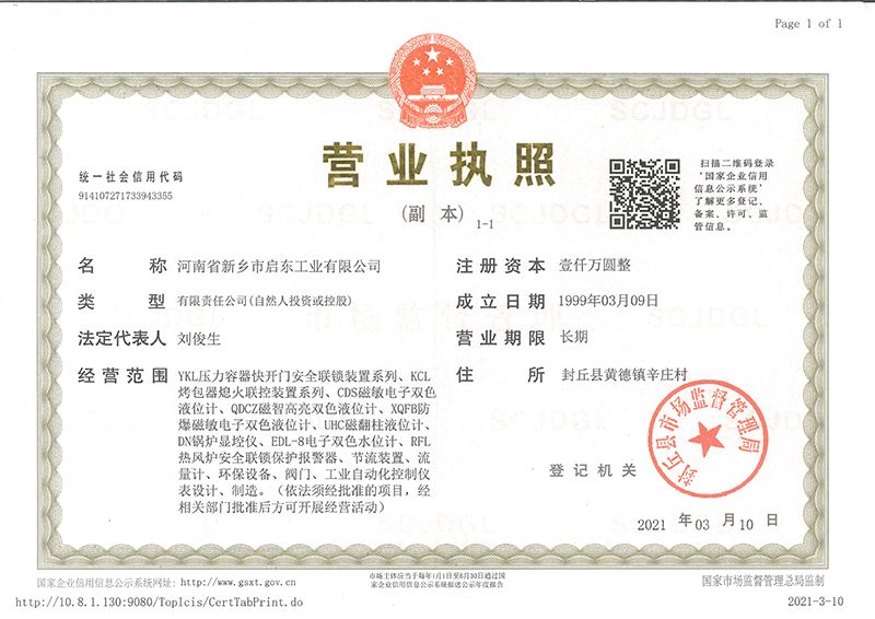 河南省新鄉(xiāng)市啟東工業(yè)有限公司始建于1987年,是專(zhuān)注研發(fā)、生產(chǎn)自動(dòng)化儀器儀表(主要與壓力容器、鍋爐等容器配套使用)的廠家。主要產(chǎn)品有液位計(jì)(磁敏雙色型、磁翻柱型等)系列、烤包器熄火聯(lián)控裝置系列、壓力容器快開(kāi)門(mén)安全聯(lián)鎖保護(hù)裝置系列、鍋爐報(bào)警器系列。二十多年來(lái),公司產(chǎn)品暢銷(xiāo)國(guó)內(nèi)并遠(yuǎn)銷(xiāo)俄羅斯、蒙古與東南亞,深得廣大用戶的信賴(lài)和好評(píng)。我們多年來(lái)致力于自動(dòng)化儀器儀表的研制生產(chǎn),公司現(xiàn)具有完善的生產(chǎn)、試驗(yàn)、檢測(cè)手段和設(shè)備。科技創(chuàng)新、誠(chéng)信服務(wù),是我們不變的經(jīng)營(yíng)理念,我們將以強(qiáng)有力的技術(shù)支持及售后竭誠(chéng)為客戶提供良好的服務(wù)。  2012年我公司成功研發(fā)了KCL系列烤包器熄火聯(lián)控裝置,并于2013年2月2日榮獲中華人民共和國(guó)國(guó)家知識(shí)產(chǎn)權(quán)局辦法的《實(shí)用新型**證書(shū)》<**號(hào):2021202257735>該產(chǎn)品廣泛應(yīng)用于唐鋼等大型鋼鐵企業(yè),為烤包器安全作業(yè)提供了有力的保障。  2002年我公司成功研發(fā)磁敏電子雙色液位計(jì)獨(dú)特的高亮度LED紅綠雙色顯示,獲得了專(zhuān)家的首肯和用戶的一致好評(píng)。在此基礎(chǔ)上我公司研發(fā)人員十年磨一劍,致力于XQFB-1防爆型磁敏雙色液位計(jì)的研發(fā),于2013年12月27日由國(guó)家防爆電器產(chǎn)品質(zhì)量監(jiān)督檢驗(yàn)中心檢驗(yàn)合格并頒發(fā)防爆合格證書(shū)<編號(hào):cnex19.0883>。該產(chǎn)品性能得到了充分的發(fā)揮,廣泛應(yīng)用于含有Ⅱ類(lèi)A·B級(jí)T1-T4組可燃?xì)怏w或蒸汽與空氣混合形成的爆炸性混合物的0區(qū)、1區(qū)危險(xiǎn)場(chǎng)所。連接用戶DCS或PLC系統(tǒng)實(shí)現(xiàn)遠(yuǎn)距離集中顯示和控制,從而實(shí)現(xiàn)節(jié)能、數(shù)字化管理。為用戶增加了一定的經(jīng)濟(jì)效益和社會(huì)效益,。2014年公司成功申請(qǐng)了夢(mèng)潤(rùn)儀表的logo,新的品牌新的形象,夢(mèng)潤(rùn)儀表是啟東的LOGO, 歡迎新老用戶前來(lái)洽談合作。  我們一如既往地注重科研的投入,憑借產(chǎn)品的不斷更新、加大科技含量,進(jìn)一步拓展市場(chǎng)。我們相信品質(zhì)成就未來(lái),以過(guò)硬質(zhì)量、優(yōu)惠價(jià)格、完善的售后服務(wù)熱忱歡迎廣大客戶來(lái)我司視察指導(dǎo)、洽談業(yè)務(wù);精誠(chéng)合作,共創(chuàng)輝煌!